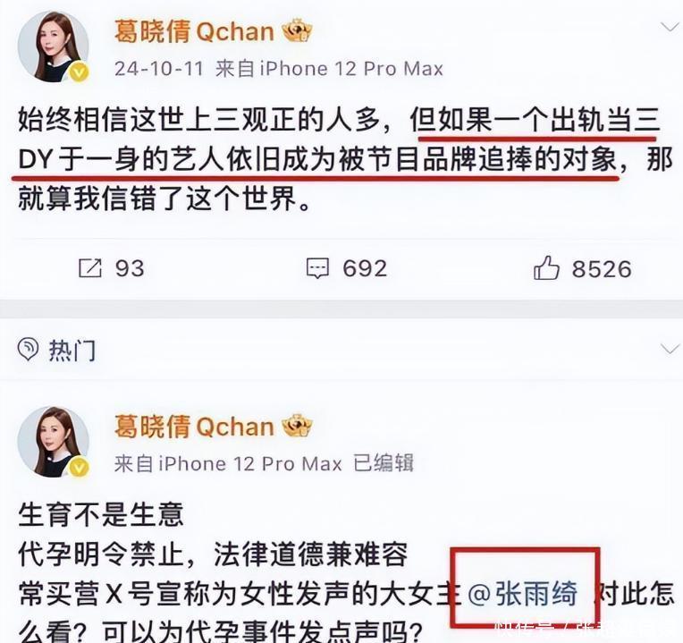 之所以葛晓倩会这么做,是因为在她看来自己的婚姻就是因为张雨绮破碎的。她不仅指控张雨绮代孕,还表示张雨绮明知袁巴元有妻子的情况下介入对方生活。早在2024年的时候,这俩人就在互联网上有过扯皮。
