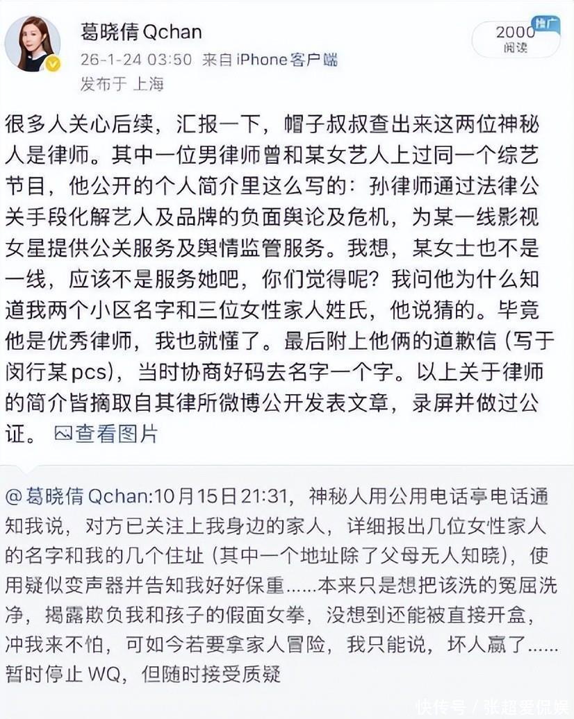 但没想到时隔两年之后,葛晓倩又开始对张雨绮进行了“狂轰滥炸”。其实之所以会这样,是因为在今年葛晓倩接到过一个陌生人的威胁,结果报警之后发现这俩人竟然是律师,而且从葛晓倩的话语中。或多或少都在把矛头指向张雨绮。
